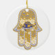 Mano del ornamento de la buena suerte del hamsa del oro de Fátima en www.zazzle.co.uk/ArtIslamia. Un ornamento moldeado decorativo complejo diseñado de la mano del hamesh, lo compra directo para los mejores negocios. Otro colorea disponible en tienda.