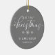 Nuestra primera Navidad como señor y señora en escritura caligráfica y tipografía moderna se superponen en adorno gris. En la parte trasera del adorno está tu foto favorita. Hace un regalo perfecto para la familia y los amigos.