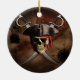 Piratee el cráneo, remiendo del ojo, gorra del pirata, y las espadas cruzadas sobre un mapa náutico del estilo antiguo de las llaves de la Florida, las islas de las llaves fueron utilizadas históricamente por los piratas como una guarida y base.