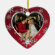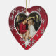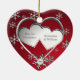 Ornamento de conservas de fotos en forma de corazón con texto de personalizable y foto.