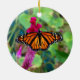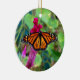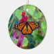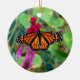 La Mariposa Monarca se alza con gracia sobre la vibrante flor de celosia, sus delicadas alas, una ráfaga vívida de naranja y negro. La escena es una sinfonía de la belleza de la naturaleza, un momento fugaz capturado en una fascinante muestra de color y gracia.