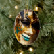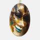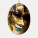 Una máscara veneciana utilizada durante el carnaval de Venecia, Italia, está pintada de oro, turquesa y negro. En toda Venecia se encuentran disfraces elaborados y máscaras de caras durante la celebración anual del teatro. Este adorno de cerámica de forma ovalada es completamente personalizable y listo para ser personalizado.