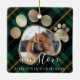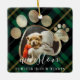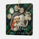 Hermoso mascota conmemorativo de dos adornos fotográficos para recordar a tu amigo y mantenerlos en tus corazones. Diseña funciones para imprimir cuadros fotográficos para mostrar la foto de tu mascota. La huella de la pata está enmarcada en oro falso. Diseño de fondo de patrón verde festivo. Personalizar con el nombre del mascota y el año. Obra de Moodthology Papery.