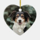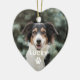 El adorno conmemorativo de Navidad en forma de corazón personalizado muestra una foto de tu mejor amigo peludo con un simple y moderno monograma de primer nombre y acento de impresión de garras en blanco. Personalice el diseño para su nuevo cachorro, el perro de su familia, o en la amorosa memoria de un mascota especial.