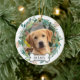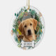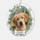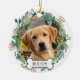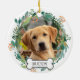 Personalice este diseño de ornamento de flores de flores de color verde acuático con una foto de su amigo peludo con su nombre en la placa de monograma de hueso de perro. Un gran regalo para los amantes del perro, para celebrar la primera Navidad de un amigo peludo o para apreciar la memoria de un perro de la familia amado.