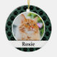 ¡Presenta a tus adorables miembros de tu familia peluda en tu árbol de Navidad! Este diseño de adorno con motivos de pintura con motivos de papa presenta un moderno diseño de monograma que se puede personalizar con el nombre de su gato (o perro) y su foto. Cazador verde y blanco con huellas de pata negra. Consejo de la foto: recortar la foto en un formato cuadrado antes de subirla al sitio.