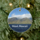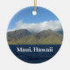 Saludos desde el hermoso Maui Hawaii con esta impresionante fotografía del paisaje en un bonito adorno regalo para turistas o nativos de la encantadora isla. Cuenta con una región montañosa verde con nubes blancas exuberantes y cielo azul sobre las olas del océano de un profundo azul de la playa.