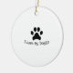 Conmemorar a tu compañero favorito de peluquería en tu árbol de vacaciones con este Ornamento de cerámica de mi doggy Black and White Paw diseñado por The Write Stuff Publishing, LLC.