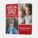 Foto del ornamento del árbol de Navidad Best Dad Ever con dos fotos de sus hijos y color de acento rojo detrás del texto blanco. Grandes regalos de Navidades para padres y padres.