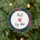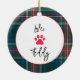 Tartán Pintado patrón en blanco rojo verde, verde, rojo con personalizado BEST DOG MOM en negro, personalizado AMOR, NOMBRE MASCOTA en negro. Texto fácil de personalizar, color de texto. Gran sorpresa de vacaciones para CUALQUIER amante del perro, mamá del perro, dama loca de mascota, favores de fiesta, regalos de la anfitriona. Festividad, Colorido, Diversión. Mezcle y empareje colecciones completas de objetos de Tartán / Fiestas / Ornamentos de Navidad por TMCdesign.