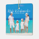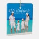 Chic customizable beach family photo Christmas ornament with your favorite tropical photo in the sun. Add a full photograph of your favorite memory from your island vacation to the coast on the front and one on the back. A beautiful coastal holiday ornament gift with pretty white script over the picture.
