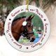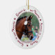 Honra a tu mejor amiga con un adorno conmemorativo de fotos personalizados. Este singular recuerdo de adornos de mascota es el regalo perfecto para usted, familia o amigos para rendir homenaje a su ser querido. Esperamos que su adorno conmemorativo le traiga paz, alegría y recuerdos felices. Cita "Para siempre en nuestros corazones". Personalizar con fotos favoritas de perros mascotas o gatos, y nombre . El ornamento es de doble cara, puedes hacer dos fotos favoritas, una a cada lado. Personalice el nombre en la parte delantera y las fechas en la parte posterior. DERECHOS RESERVADOS © 2020 Judy Burrows, Black Dog Art - Todos los derechos reservados. Ornamento cerámico Mascota de Keepsake personalizado