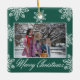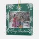 Adorno De Cerámica Merry Christmas 2 Photo Green And White Snowflakes