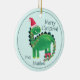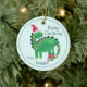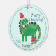 Feliz Navidad Dinosaurio Nombre Ornamento cerámico. Personaliza con el nombre y el año.