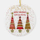Árboles artísticos y hermosos de Navidad con adorno decorativo de Navidades dorados. Cita personalizada, nombres de familia con ilustraciones de árbol de Navidad dorado en un fondo de copos de nieve. Este adorable adorno transmite el mensaje y el espíritu de Navidad. Utilice los marcadores de posición de TEXT para personalizar del ornamento haciendo clic en el botón 'Personalizar'. Edite utilizando la herramienta Diseño para elegir el estilo de fuente y el formato. Si te gusta mi arte, visita la tienda 'merry_xmas_store' para más de esos productos. Enlace: https://www.zazzle.com/store/merry_xmas_store