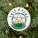 Comparte algo de espíritu vacacional con este único adorno de yule con un texto sencillo y color de fondo, con un pentáculo de ramera de color agua, velas y vegetación de invierno. ¿Tienes un bendito solsticio de invierno?