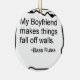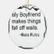 Un par de ojeadas de los ojos sobre un cuadrado que enmarca las palabras "mi novio hace caída de las cosas de las paredes". ¡Grande para cualquier persona que esté fechando los jugadores de un jugador-bajo del bajo tienen el tiempo más fácil el sacudir de las paredes! ¡Muestre a su novio y el mundo cómo es orgulloso usted está de él y su bajo!