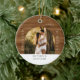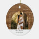 Celebrate your engagement with this elegant mid-century modern ornament, featuring a stylish faux brown wood and white two-tone design. A bold white stripe along the bottom highlights the couple’s name, while a minimalist square frame displays your favorite engagement photo. With one photo on each side, this ornament is a beautiful double-sided keepsake. The phrase “Engaged & Merry”, the year, and your names are displayed in a clean, modern font around the image – perfect for adding a personal touch to your holiday decor or gifting to a newly engaged couple. Design and Layout by ©Moodthology Papery