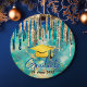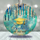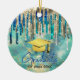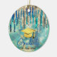 Moda azul turquesa purpurina oro gotea adorno de cerámica graduada. Ornamento de graduación espumoso para un graduado de secundaria o universitario. Monograma de este hermoso regalo con tu personalizado de alto nivel y clase en el centro.Un regalo perfecto de Navidad adorno para el grado de este año de la Clase con un gorra de graduación de mortarboard. Ps: no hay un verdadero purpurina o parte elevada, es un hermoso diseño impreso.