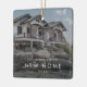 Esta moda primera Navidad en nuestra nueva foto superpuesta adorno de cerámica es la perfecta decoración moderna del árbol de Navidad. El diseño es sencillo y presenta una tipografía blanca minimalista clásica con un ambiente rústico de boho. Este adorno de sake dice "primera Navidad en nuestro nuevo hogar". Personaliza tu adorno doble con una foto y el año.