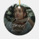 Celebre un hito significativo con este adorno de regalo de graduación de escuela secundaria con foto moderna. Con una foto favorita del estudiante junto con tipografía moderna y limpia, este adorno de graduación personalizado captura un momento especial para atesorar durante años. Perfecto para celebraciones de graduación de escuela secundaria, recuerdos de la clase de, o regalos de graduación reflexivos, hace un hermoso recordatorio de trabajo duro y logro. Totalmente personalizable con la foto del graduado, nombre, escuela y año de graduación, este elegante adorno de cerámica es un recuerdo atemporal que honra el viaje del graduado y su futuro brillante por delante.
