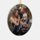 Personalized Christmas ornaments feature elegant trendy joyful script and family name and photos, modern and simple.