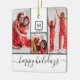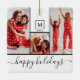 Decoren su árbol con este moderno adorno de fotos en monograma. Este diseño cuenta con 3 ranuras para fotos y vacaciones felices en un guión con letras a mano.