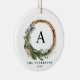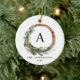 El follaje moderno mínimo era el guión de la paz de la fiesta de Navidad adorno de Navidad. El eucalipto pintado a mano, el follaje mínimo y la moderna corona rústica de mimbre le dan a este adorno vacacional un toque lujoso. En verdes, marrones y grises de clase. edite la inicial y la familia para hacerlo extra especial.