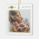 A soft modern keepsake for new parents, this white and gold tree ornament features a simple gold heart behind the baby’s name, a clean serif font for the text, and a large photo template photo, that you can replace with your own favorite image of mom and newborn; add your baby’s name and date of birth to create a personalized heirloom that looks beautiful on the Christmas tree year after year and makes a sweet gift for grandparents and family.
