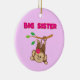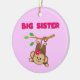 Un mono lindo con una flor rosa balanceándose por su cola desde una rama y un texto rosado dice "Gran Hermana" en camisetas de la hermana mayor, cadenas de llaves, tarjetas, pegatinas, bolsas de té, imanes, mousepads, almohadas, y otras prendas y regalos de la hermana mayor.