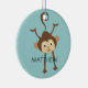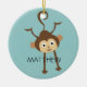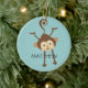 Mono con nombre animales lindos personalizados adorno navideño en azul. Perfecto para la primera Navidad del bebé