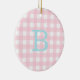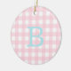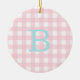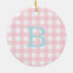 Adorno De Cerámica Monograma de Gingham azul y rosa