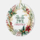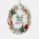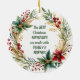 Aquí hay un hermoso adorno personalizado para esa reunión especial de Navidades familiares. El centro delantero sostiene su monograma en verde pálido, con su nombre familiar escrito en verde oscuro sobre él, y NAVIDADES en rojo debajo. La agrupación está enmarcada con una bonito y una corona de Navidades de acuarela de poinsettia. La parte posterior del adorno tiene la misma imagen de corona con el texto de su personalizado en verde.
