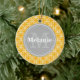 Adorno De Cerámica Monograma gris de patrón de cuadrados amarillos mo