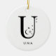 Añada un toque de magia celeste a su decoración navideña con este impresionante adorno navideño monograma. Con una carta adornada con pequeñas estrellas y lunas a su alrededor y su elección de nombre debajo, este adorno personalizado es el recuerdo perfecto para la temporada. Se puede ajustar cómodamente hasta 10 caracteres para el nombre que aparece debajo de la letra. Ya sea que estés decorando tu propio árbol o dándolo como un regalo atento - tal vez para un recién nacido o miembros de la familia, este adorno agrega un toque único y significativo a las festividades. Celebra las vacaciones con estilo con este diseño atemporal de inspiración celeste. Puedes elegir uno por cada miembro de la familia para decorar tu árbol. Este listado es para la letra "U" pero por favor ver el resto de la colección de adornos celestiales para el resto de las cartas!