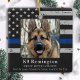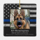 Honra a tu mejor compañera y mejor amiga con este ornamento fotográfico Personalizado de la policía de la Línea Azul delgada. Personalice la foto de su oficial de K9, su nombre, la fecha de fin de reloj . Cita: Nacido para el amor, entrenado para servir, leal hasta el final. DERECHOS RESERVADOS © 2020 Judy Burrows, Black Dog Art - Todos los derechos reservados. Monumento a la policía K9 - Línea Azul delgada - Ornamento cerámico de perro de la policía