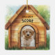 Conmemore el querido recuerdo de su mascota favorita con nuestro conmovedor adorno conmemorativo para perros. Con un encantador diseño de casa de perro de estilo acuarela, este adorno incluye un espacio especial para la foto de su mascota en el arco. Personalice la plantilla con el nombre de su mascota y los años que alegraron su vida. Un preciado recuerdo, este adorno sirve como un hermoso recordatorio de la alegría y el amor que su amigo peludo trajo a su hogar. © Kimbellished, LLC