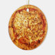 Ornamento de Navidad con una foto de pizza de queso salchicha de plato profundo. Pañuelo de pizza de Crustmas.