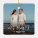 Añade tus fotos bodas delante y atrás, adorno doble de dos lados... Estilizada tipografía de escritura suelta y casual, sus nombres y año u otro texto. Escritura moderna, simple e informal elegante de escritura. Celebren su primer año como mr y mrs, casados con este hermoso regalo de boda por adorno de novia y novio. Sube tu foto para crear un adorno navideño lleno de sangre, una maravillosa idea de regalo como recién casados, fiesta de bodas u otros amigos y familia.