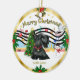 Navidades tema musical con un Scottish Terrier, una paloma, un muñeco de nieve, árbol de Navidad y coloridas notas musicales, un diseño para recordarnos la alegría que trae la música de nuestros Navidades.