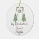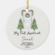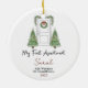 Celebrate the excitement of your very first apartment with this charming hand-drawn ornament featuring a festive front door, Christmas trees, and garlands in soft watercolor style. Personalize it with your name, address, and year to capture the joy of this new beginning. The minimalist design with elegant handwritten text makes it a perfect keepsake or thoughtful gift for anyone moving into their first home or apartment. A timeless reminder of independence, warmth, and holiday cheer that will hang beautifully on your Christmas tree for years to come.