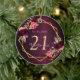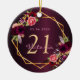 Un adorno para un cumpleaños glamuroso y glamuroso de 21 años (o cualquier edad). Fondo de color burdeos con gradiente oscuro. Marco geométrico falso dorado y flores acuarelas, florales de oro burdeos, rosa y rosa. Personaliza y agrega una fecha, nombre y edad 21. El texto: El nombre está escrito en rosa con una escritura de estilo con letras a mano moderna. Perfecto como decoración fiesta, favoritismo, mantenimiento o como regalo.