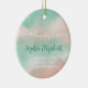 Estadísticas de nacimiento personalizadas y nombre de guión elegante con adorable adorno de fotos de bebés en una dulce mezcla de nube rosa y cielo verde turquesa pastel ideal para crear un ambiente cálido y acogedor para la primera Navidad de un recién nacido. Este capricho es una manera moderna y elegante de decir "Bienvenida a la bebé" esta festividad.