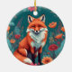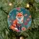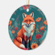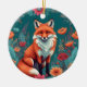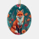 Ilustracion de adorable zorro naranja y adorno de fondo floral.