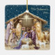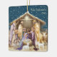 Celebra el espíritu alegre de los Navidades con este elegante adorno navideño, que exhibe maravillosamente una escena de la Natividad Nocturna. Personaliza sin esfuerzo el nombre y el año de tu familia.