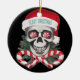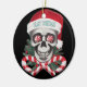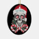 Para el lado más oscuro de los días de fiesta, un cráneo en un gorra de Santa y la bandera pirata hecha de los bastones de caramelo.