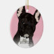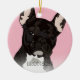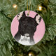 Adorno de Navidad de bulldog francés inspirado en el arte pop extravagante con un perro bulldog francés atigrado negro en un fondo rosa pastel que se puede cambiar a cualquier color, agregue el nombre de su mascota.