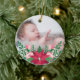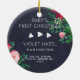 Ornamento bonito al cual usted puede añadir su propia foto en honor del primer navidad de su bebé. Ha adornado con un arreglo floral colorido que consistía en el poinsettia, rosas, y el muérdago.