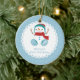¡El primer ornamento del navidad del bebé ofrece un sistema adorable del muchacho del muñeco de nieve en azul y blanca fondo punteado una polca! Fácil personalizar con su Info y fecha