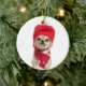 Adorno De Cerámica Navidad que lleva gorra y bufanda de la chihuahua